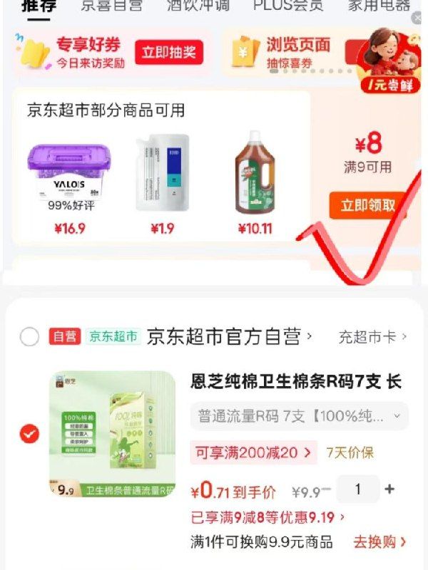 0.9亓!洁柔抽纸100抽3包