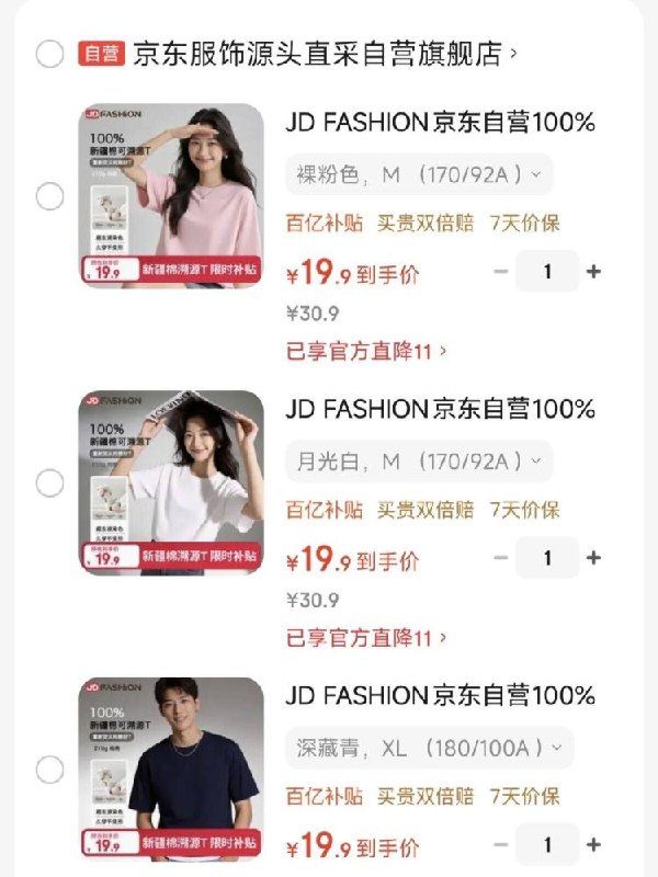 🚦 京东自营100%新疆棉T恤