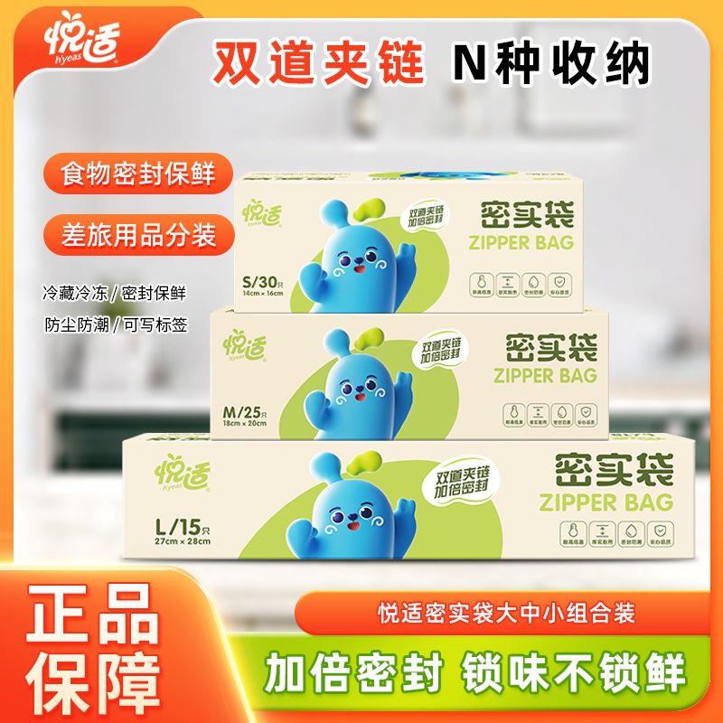 心相印悦适悦宝双夹链密实袋食品级加厚密封袋大中小组合装70只