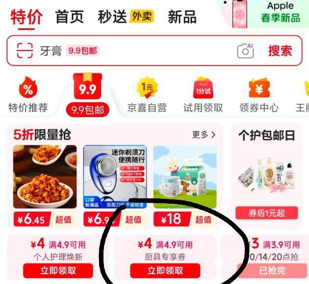 🚦 京东-9.9包邮-领4.9-4厨具券
