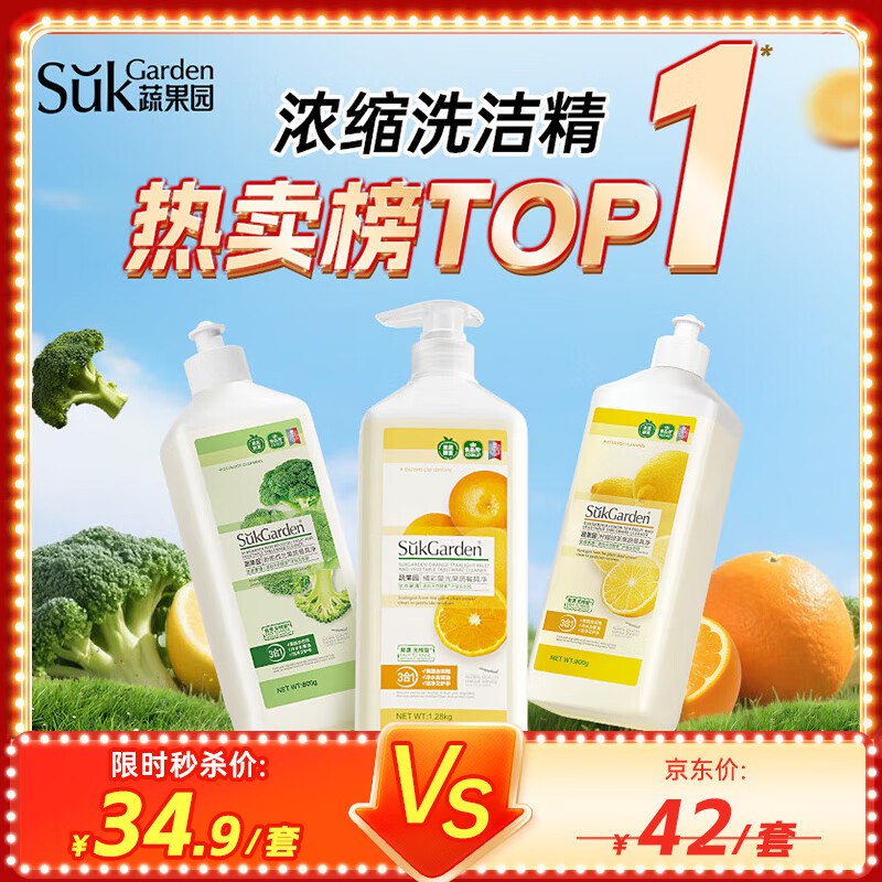 自营蔬果园 果蔬洗洁精3大瓶 共2.88kg