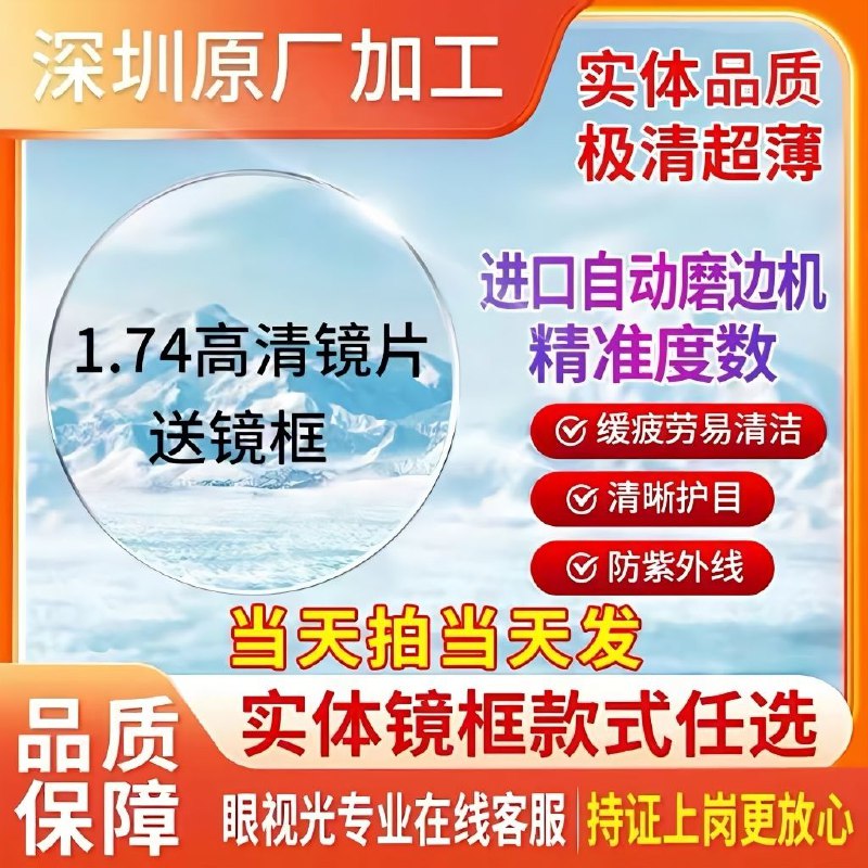 1.74定制眼镜配镜耐磨超薄非球镜片高清防蓝光辐射防紫外树脂镜片